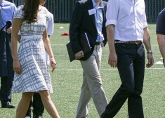 Sagaidot prominentos viesus, Kembridžas hercogiene Ketrīna bija ģērbusies modes nama „Erdem” kleitā ar ziedu apdruku, bet kājās apāvusi spāņu zīmola „Castañer” vasaras kurpes uz pilnās zoles.