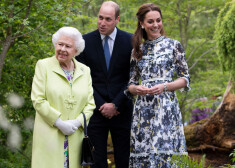 Elizabete II, princis Viljams un hercogiene Ketrīna Čelsijas ziedu izstādē