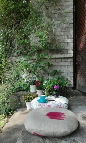 Ne jau vienmēr ir vajadzīgas smalkas mēbeles vai īpaši augi, lai uz terases justos omulīgi. Uzšūti viegli sēžamspilveni, pāris ziedošu augu puķupodos, laba grāmata un kafijas krūze – ar to bieži vien pietiek. Māca māksliniece Signe Folka.