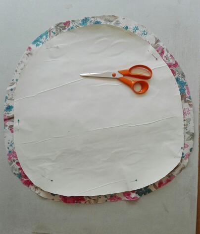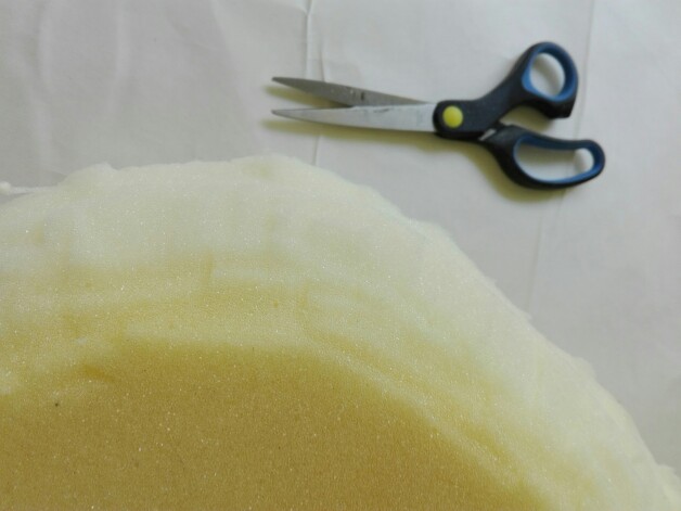 2. Ar šķērēm izgriez apaļo formu porolona malām, nogriežot lieko.