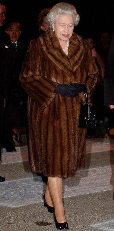 Karaliene Elizabete II dabiskās kažokādas kažokus un cepures nēsājusi visu savu līdzšinējo dzīvi. Turklāt arī vairāki no viņas ceremoniālajiem apmetņiem ir no kažokādas.