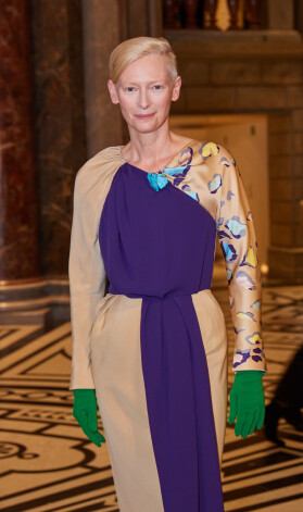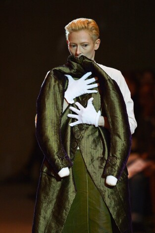 Par unikālo, ultramoderno garderobi aktrise var pateikties draugam, kolumbiešu izcelsmes dizaineram Haideram Akermanam, kurš ir Tildas iecienītākais tērpu autors, kamēr viņa pati – dizainera mūza.