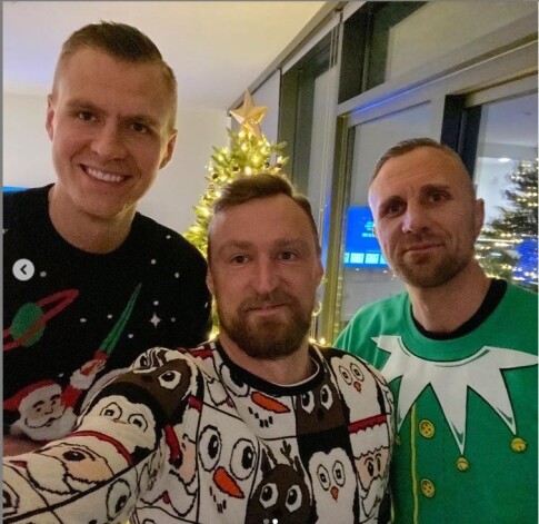 "Priecīgas brīvdienas no Porziņģu ģimenes," tā divus foto parakstījis Mārtiņš, kas vienā bildē redzams ar saviem brāļiem - Jāni un slaveno basketbolistu Kristapu.