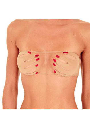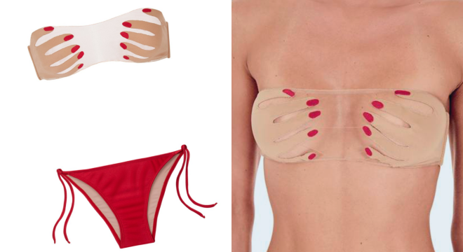 Brazīlijas dizaineres Adrianas Degreasas izgudrojums ir amizants – tas ir peldkostīms, kura dekoratīvās aplikācijas imitē krūtis saturošas rokas. „Perfekts tēls Vidusjūras topless pludmalēm,” rakstīts produkta paskaidrojumā.