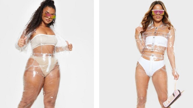 Interneta tirgotājs, masu modes gigants PrettyLittle Thing liktu nosarkt pat drosmīgākajām kailuma karalienēm – Cardi B un Kardašjanu ģimenei. Veikala piedāvājumā ir sērija ar caurspīdīgām drēbēm – poliestera biksēm, svārkiem, kleitām un bleizeriem par simboliskiem 32–58 eiro, tikpat simboliskiem kā pats apģērbs.