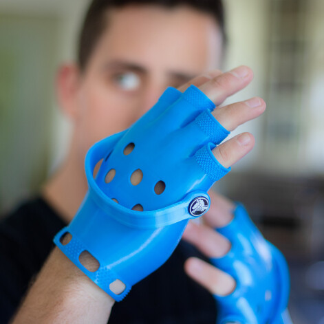 Tas ir noticis! Crocs apavi, kas sabiedrību sadala divās karojošās pusēs, ir kļuvuši par uzņēmēja, produktu dizainera Meta Benedeto iedvesmas avotu. Viņš savam YouTube kanālam ar 3D printera palīdzību ir radījis cimdus Crocs gumijas čību izskatā. Lai gan tie ir atbilstoši nosaukti par Nevajadzīgu izgudrojumu, viņa video komentētāji lūdz iespēju tos iegādāties.