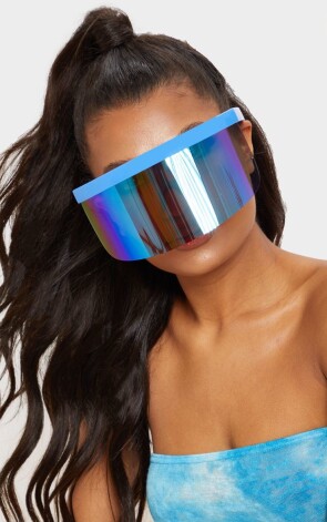 Jaunais pārlielu saulesbriļļu izmērs ir sasniegts! Brilles, kuras no saules UV stariem pasargās ne tikai acis, bet arī seju, par 20 eiro iegādājamas interneta veikalā PrettyLittle Thing.