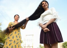 Indiešu tīne ar saviem 190 cm garajiem matiem labo Ginesa rekordu