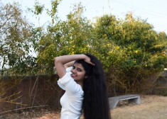 Pārsvarā es matus pinu bizē. Kad sportoju, mēdzu tos sasiet mezglā virs galvas, lai būtu ērtāk. Vienīgā situācija kad man tie traucē, ir - kad es peldu," par savu garo matu kopšanu stāsta indiešu tīne Salātlapiņa.