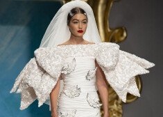 "Moschino" radošais talants kārtējo reizi pārsteidz ar svaigu kolekciju, kurā kariķēts kāds atpazīstams tēls. Gaidot 2020. gada rudens/ziemas sezonu, Milānā itāļu zīmols izrāda tērpus, kuri veidoti Marijas Antuanetes personības ietekmē un Versaļas pils greznumā - kūku formas kleitas un aksesuāri, bantes un mežģīnes, atlass, džinss un korsetes kopā ar panieri - aicina pievienoties pārliecības demonstrācijā.