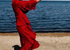 Modele Karlīna Caune Ķesterciemā pozē žurnālam “Glamour”
