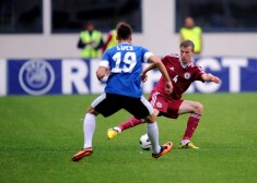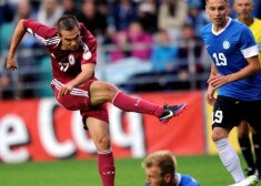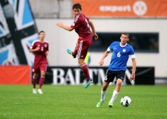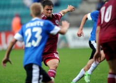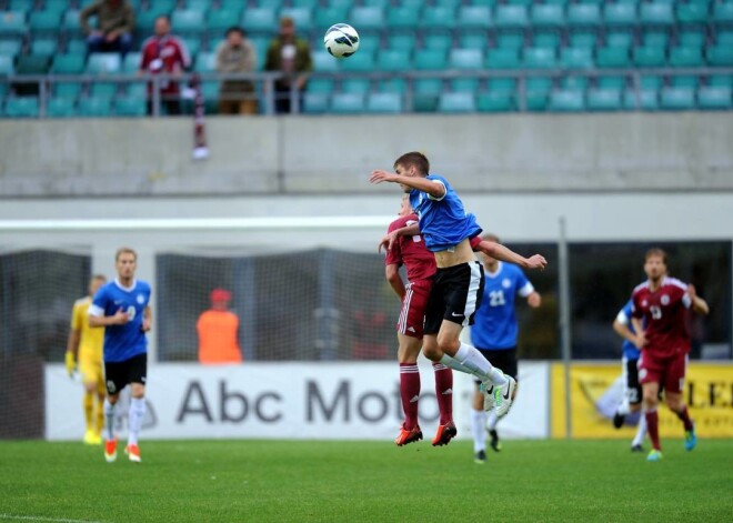 Latvijas izlases futbolisti cīnās neizšķirti ar igauņiem. FOTO