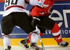 Latvija paliek bez uzvaras arī spēlē pret Austrijas hokeja izlasi. FOTO