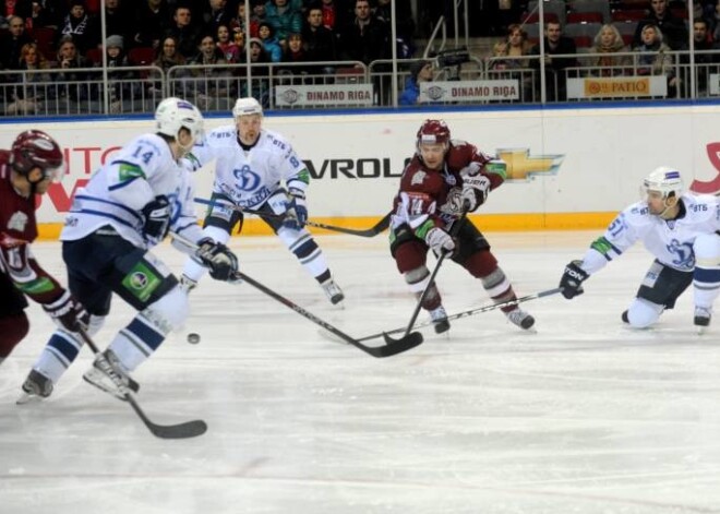 Latvijas klubs Rīgas "Dinamo" Kontinentālās hokeja līgas (KHL) regulārā čempionāta spēlē ceturtdien ar rezultātu 1:3 (0:0, 0:3, 1:0) piekāpās Latvijas speciālistu Oļega Znaroka un Harija Vītoliņa vadītajai līgas čempionvienībai Maskavas "Dinamo".