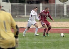 Futbola izlases kandidāti cīnās bezvārtu neizšķirti ar virslīgas izlasi. FOTO
