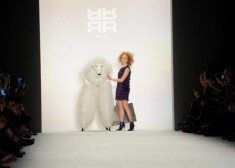 Tenisista Borisa Bekera ārlaulības meita Anna Jermakova zīmola „Riani” skatē Berlīnes modes nedēļā.