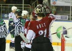 "Dzirdēju, ka šodien [ceturtdien] Latvijā tiek svinēta Sieviešu diena, kas, protams, ir ļoti labi. Par mazo skatītāju skaitu nebiju īpaši satriekts, bet pārsteigums tas bija. Hokeja fani te ir fantastiski. Kad uzzināju, ka arēna nebūs pilna, es biju šokēts. Tagad jācer, ka spēsim uzvarēt šo sēriju, lai ļautu faniem revanšēties," izteicās Holts.
