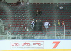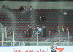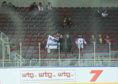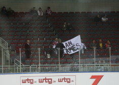 Plakāts: "Lipman, atkāpies!" no "Arēnas Rīga" tribīnēm bija jāaizvāc ļoti ātri.