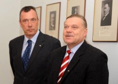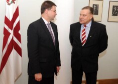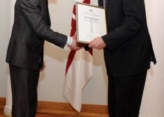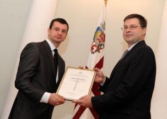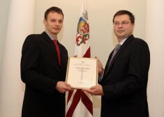 Ministru prezidents Valdis Dombrovskis otrdien Rīgā pasniedza pateicības rakstus brāļiem Martinam un Tomasam Dukuriem, kuri Eiropas čempionātā (EČ) skeletonā šosezon izcīnīja attiecīgi zelta un sudraba medaļu.