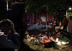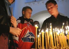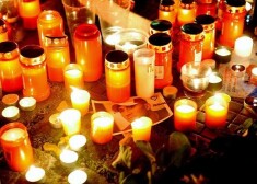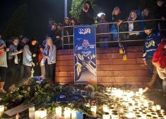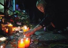 Cilvēki aizdedz sveces un piemin traģiski bojāgājušos sportistus