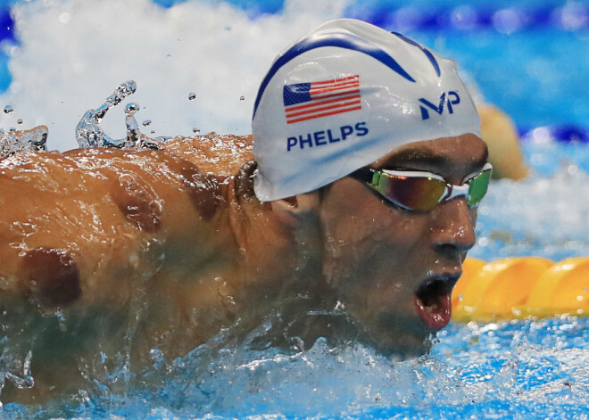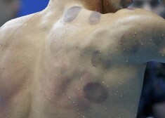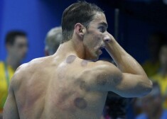 Sarkanie pleķi uz Maikla Felpsa ķermeņa