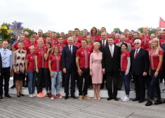 Vējonis olimpiskajai komandai pasniedz Latvijas karogu un rupjmaizi