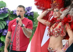 "Gribu teikt lielu paldies par doto iespēju nest karogu. Tas ir liels gods, tas būs emocionāls un īpašs brīdis manā karjerā," klātesošajiem sacīja Latvijas karognesējs.