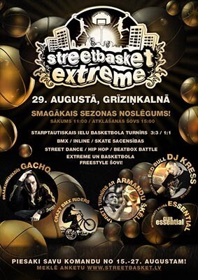 29. augustā Rīgā, „Grīziņkalna skeitparkā” notiks ielu basketbolu un ekstrēmos sporta veidus – BMX frīstailu, skeitbordu un „inline” skrituļslidošanu - vienojošā pasākuma „Streetbasket Extreme” smagākais sezonas noslēgums.