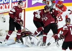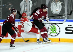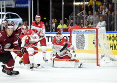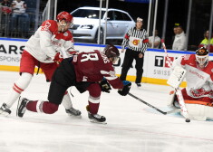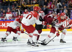 Latvijas izlase cīnās pret Dāniju pasaules hokeja čempionātā