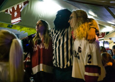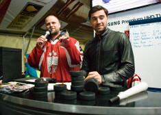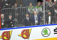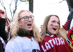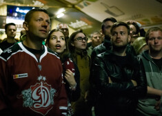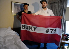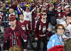 Hokejists Koba Jass fanu teltī jūt līdzi Latvijas hokeja izlasei.