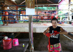 Pirmais iespaids mēdz būt maldinošs. 21 gadu vecā transseksuāla muai tai boksere Nonga Rouza Bāna Čaroensuka no Taizemes pirms sportošanas ...