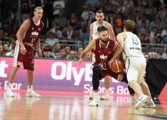 Pārpildītā arēnā mūsējie uzvar lietuviešus, un Bertāns ražīgāks par Porziņģi