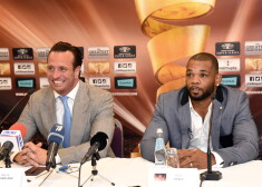 Bokseru Maira Brieža un Maika Peresa preses konference