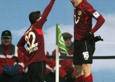 Artjoms Rudņevs atzīmē pirmo vārtu guvumu "Hannover 96" sastāvā