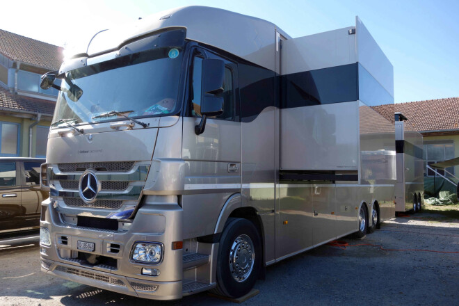Mašīnā papildus zirgu pārvadāšanas nodalījumam ir arī dzīvoklis, kurā ir divas gultas, virtuve, istaba un duša. Jātnieka un palīga istabas ir nodalītas – gulta un mazāka istaba ir arī piekabē.