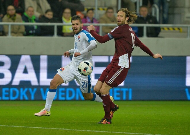 Latvijas futbola izlasei piektdien pretinieku laukumā pārbaudes mačā cīnījās neizšķirti 0:0 (0:0) ar Slovākijas valstsvienību.