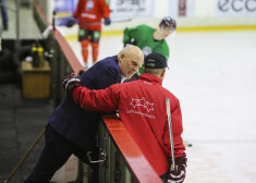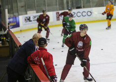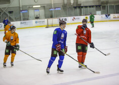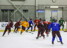 Latvijas hokeja izlases kandidātu pirmais treniņš pirms pasaules čempionāta