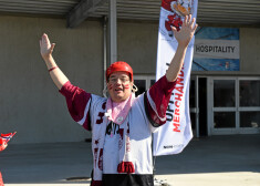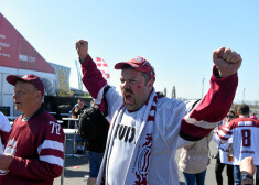 Latvijas hokeja izlases fani pirms spēles ar Norvēģiju