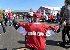 Latvijas hokeja izlases fani pirms spēles ar Norvēģiju 2018. gadā