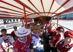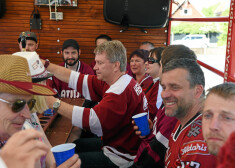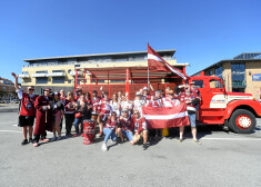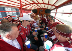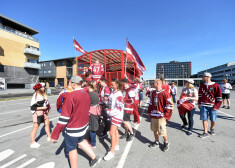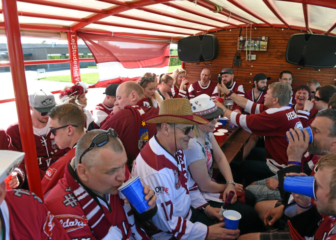 Līdzjutēji pirms Pasaules čempionāta spēles hokejā starp Latvijas un Somijas valstsvienībām 2018. gadā
