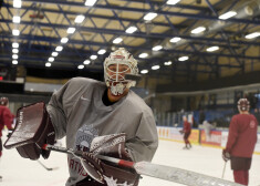 Latvijas hokeja izlases treniņš ''Quick hockey'' arēnā Herningā.