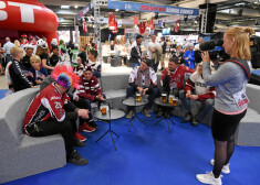 Latvijas hokeja fani Dānijā pirms spēles pret ASV