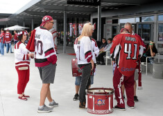 Hokeja fani Dānijā pirms Latvijas izlases spēles pret Vāciju 2018. gada 12. maijā