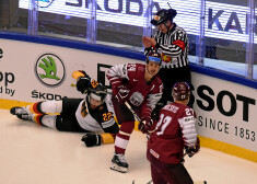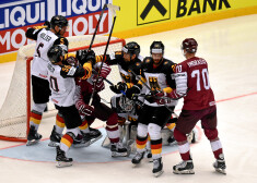 Trešajā periodā pēc ielaistajiem vārtiem Latvijas hokejisti centās bremzēt spēles gaitu, kas vāciešiem nebija pa prātam.