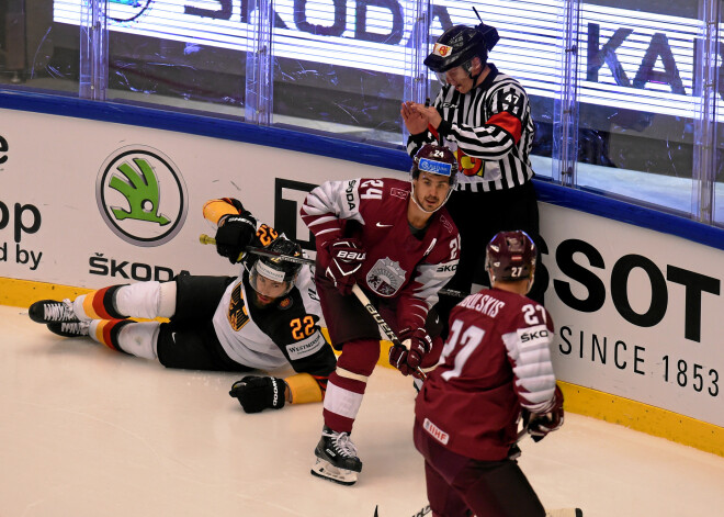 Latvijas hokeja izlase sestdien Herningā pasaules čempionāta mačā ar rezultātu 3:1 (0:0, 1:0, 2:1) pārspēja olimpisko vicečempioni Vāciju, turpinot cīņu par iekļūšanu ceturtdaļfinālā.