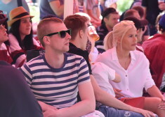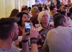 Līdzjutēji fanu teltī pie Kongresu nama vēro Latvijas maču ar Vāciju