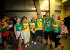 Basketbols ir Lietuvas otrā reliģija, un mūsu kaimiņvalsts fani kā allaž to pierāda arī darbos. Saposušies sarkani zaļi dzeltenā simbolikā, ...