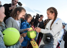 Līdzjutēji lidostā sagaida Latvijas tenisa varoni Ostapenko