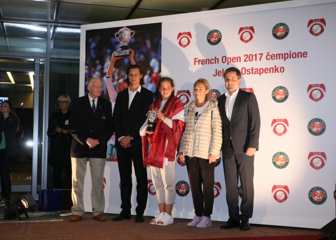 Latvijas sportiste Aļona Ostapenko, kura sestdien sensacionāli triumfēja Francijas atklātajā tenisa čempionātā, svētdien piedalījās oficiālajā uzvarētājas fotosesijā.