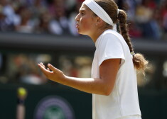 Vimbldonas "Grand Slam" pusfinālā Latvijas tenisiste Aļona Ostapenko cīnās ar bijušo ranga pirmo raketi Andželiku Kerberi.